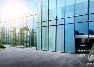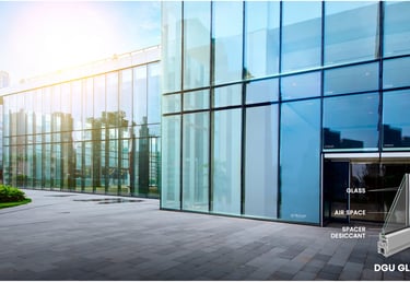 DGU (Double Glazing Glass) consists of two glass panes separated by a spacer with an insulating gas or vacuum in between.